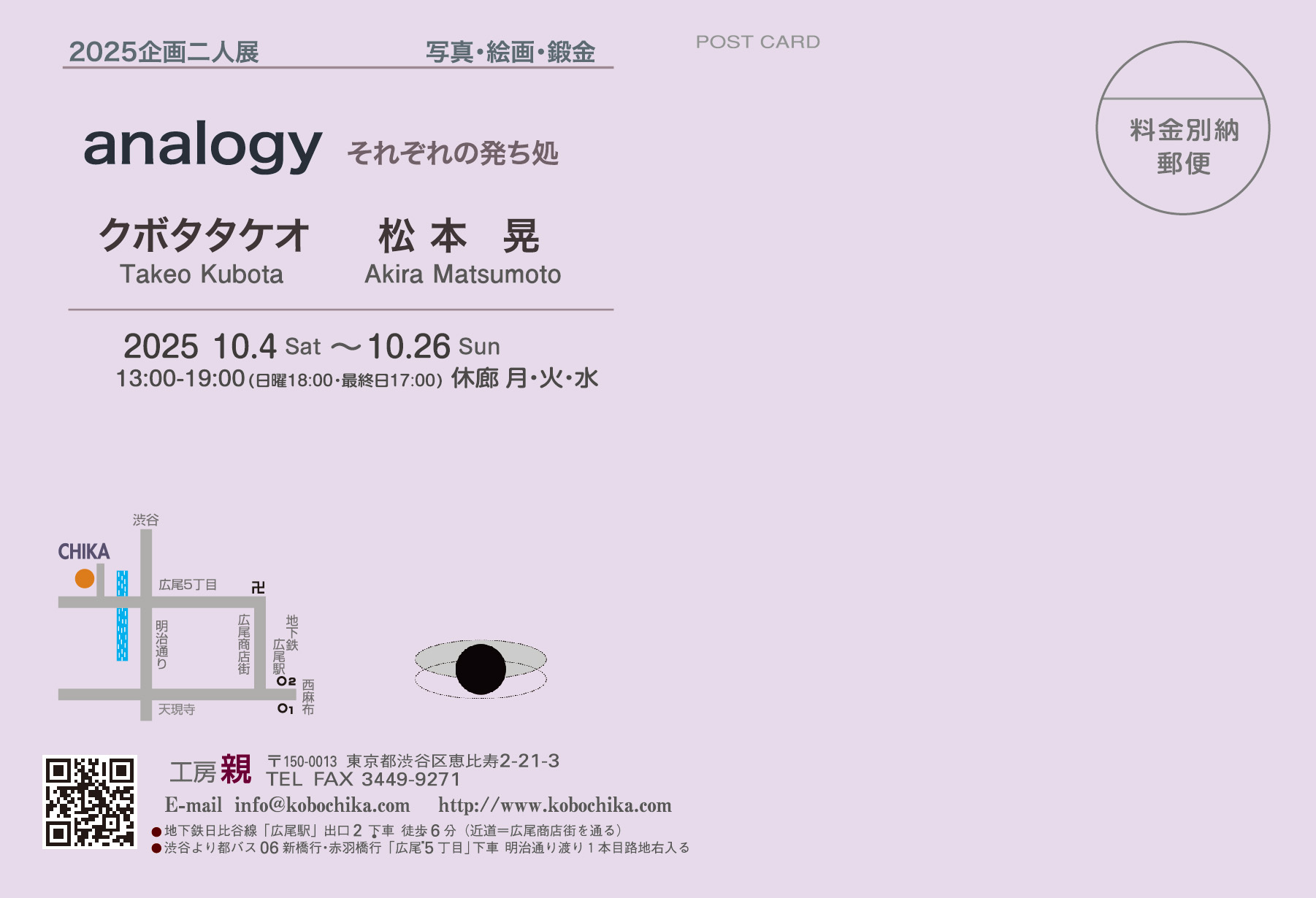 ※ギャラリーに駐車場はございません。お車でお越しの際は近隣のコインパーキングをご利用ください。