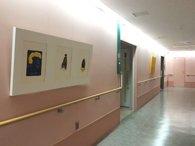 3・4Fの病棟には花をモチーフとした絵画と立体を、1Fの総合受付には花の写真と造花のリースを設置し、院内に華やかな彩りをプラスしました。