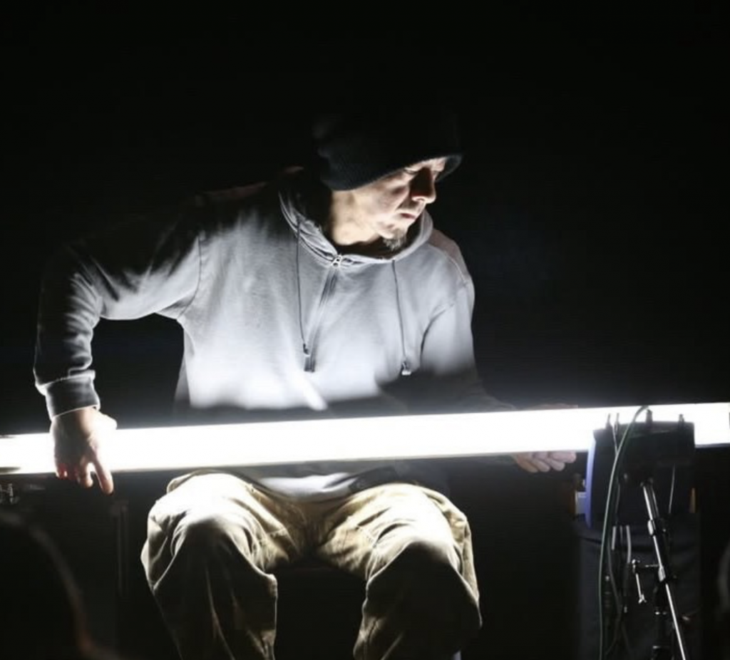 第1 回恵比寿映像祭に「オプトラム」として出演し、圧巻のライブを披露した伊東篤宏。蛍光灯を改良した