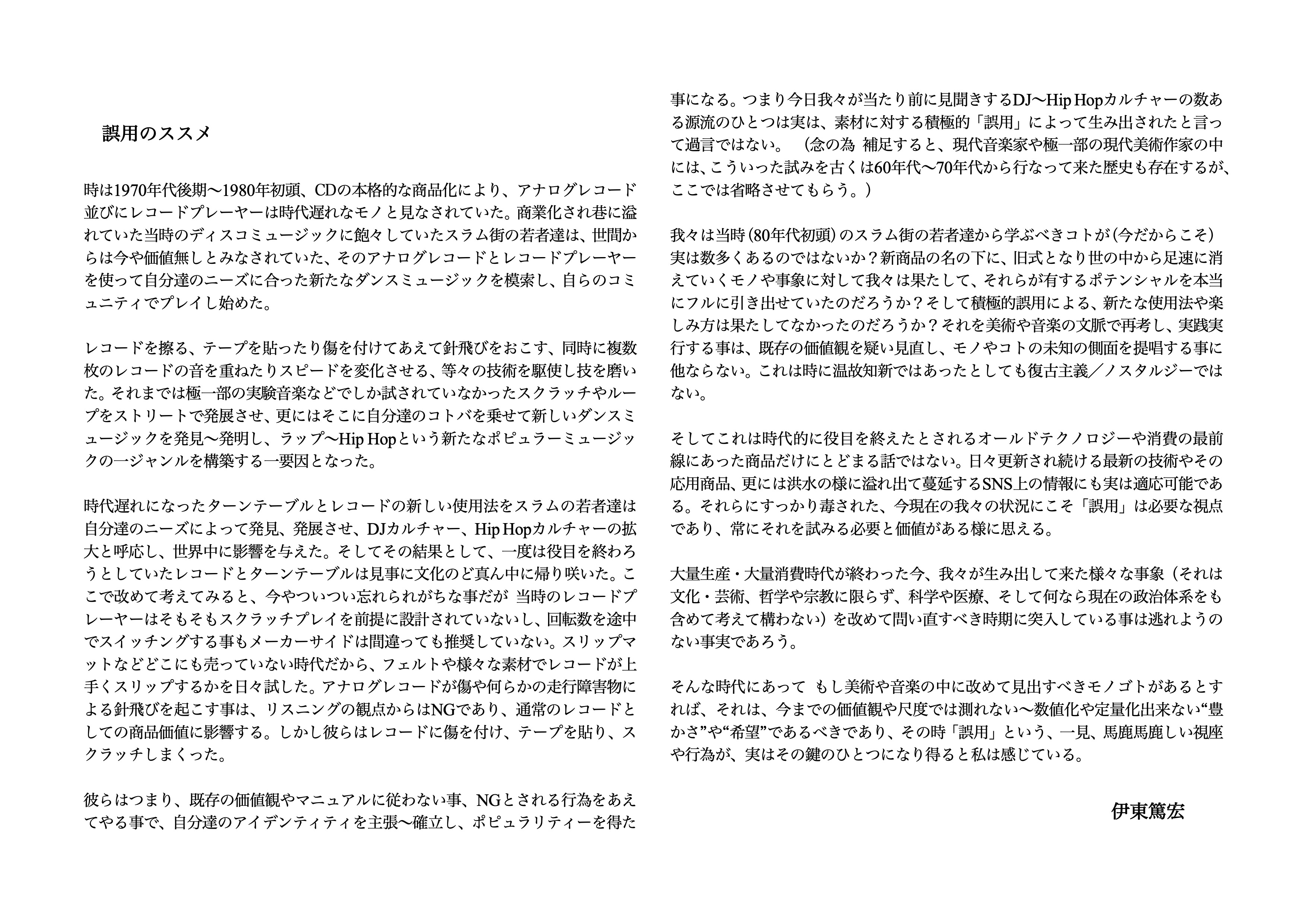 かさ" や"希望"であるべきであり、その時「誤用」という一見馬鹿馬鹿しい視座や行為が、実はその鍵のひと